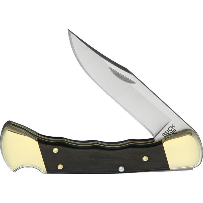 4.88" closed. 3.75" 420HC stainless clip point blade. Brass bolster(s). Genuine Crelicam Ebony finger grooved handle. Black leather belt sheath.