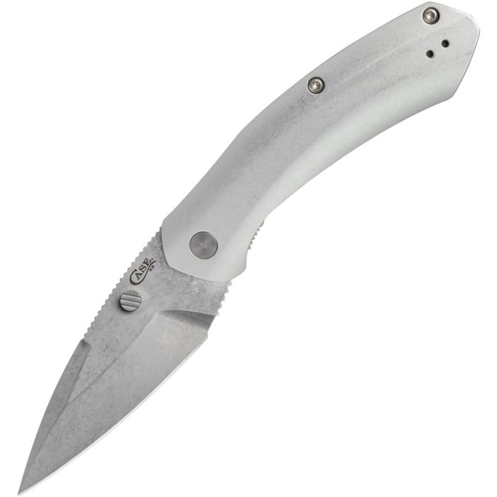WESTLINE S35VN pattern. 4.5" (11.43cm) closed. 3.5" (8.89cm) stonewash finish S35VN stainless blade. Silver stonewash finish aluminum handle. Thumb stud. Pocket clip.