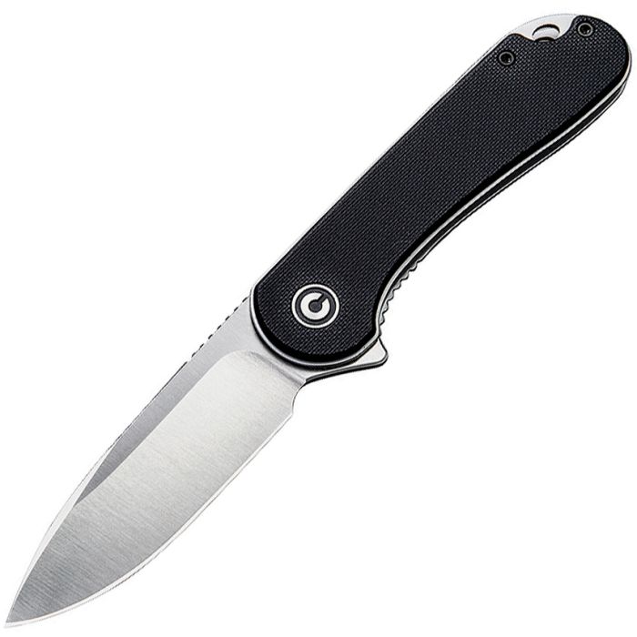 4" closed. 3" satin finish D2 tool steel blade. Black G10 handle. Extended tang. Lanyard hole. Pocket clip. Black nylon zippered storage case.