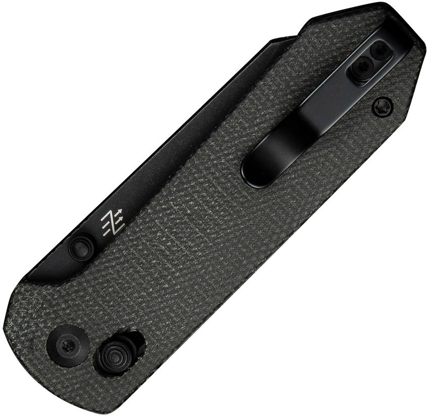 3.75" (9.53cm) closed. 2.88" (7.32cm) black stonewash finish 14C28N Sandvik stainless blade. Dark green canvas micarta handle. Thumb stud. Pocket clip.