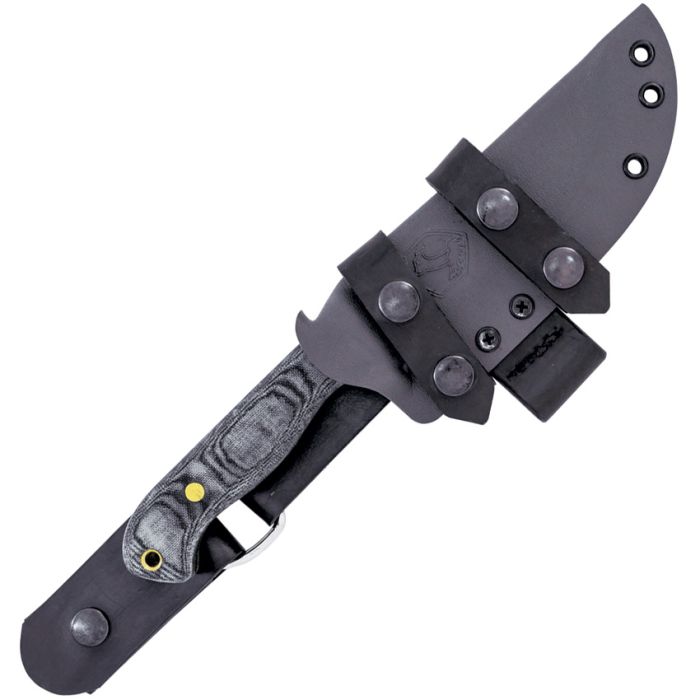 10.5" overall. 5.25" black powder coated 1075HC steel blade. Black linen micarta handle. Full tang. Lanyard hole. Black Kydex belt sheath.
