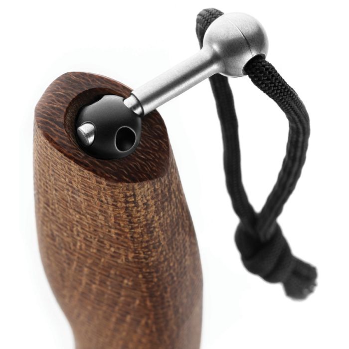 9.2" (23.37cm) overall. 4.25" (10.8cm) black PVD coated Bohler M390 stainless blade. Natural burlap micarta handle. Titanium guard. Blade tang goes ?ACross the HAndle", and it is fixed at the end with an original steel nut. There is a steel key in the box that has to go through the nut holes and can be used as a lever to unscrew the cap. ACHA was designed by Molletta and it is the first knife in the LionSteel family built in this special way. Black leather belt sheath.