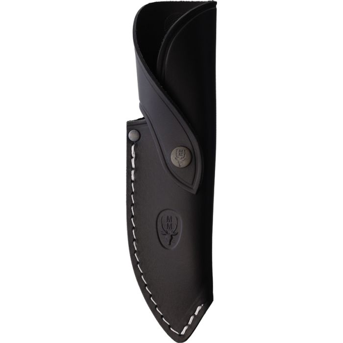 9.88" (25.1cm) overall. 5" (12.7cm) satin finish MoVa stainless drop point blade. Black canvas micarta handle. Full tang. Lanyard hole. Black leather belt sheath.