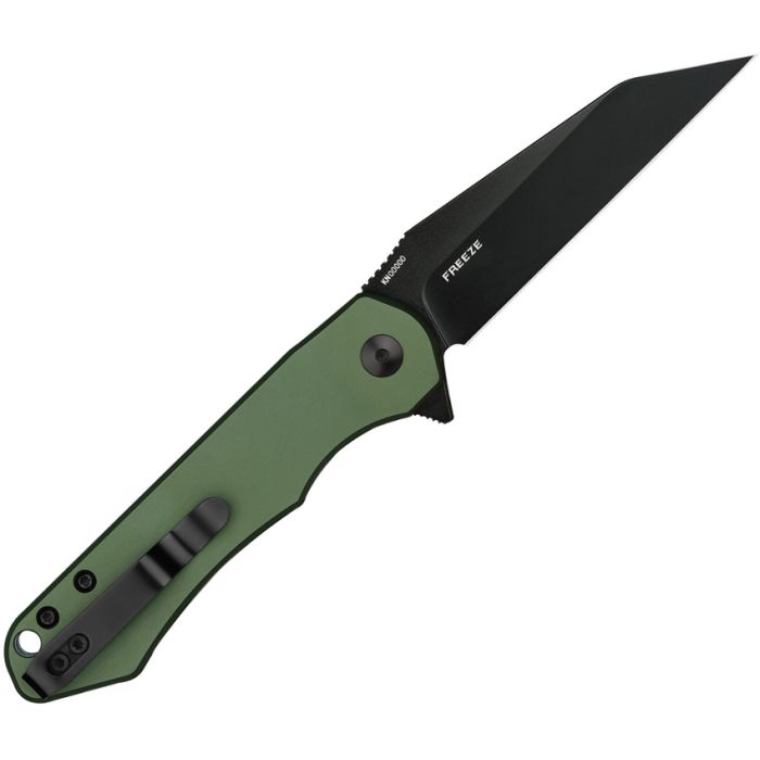 4.25" (10.8cm) closed. 3.25" (8.26cm) black finish 154CM stainless Wharncliffe blade. OD green aluminum handle. Extended tang. Lanyard hole. Pocket clip.