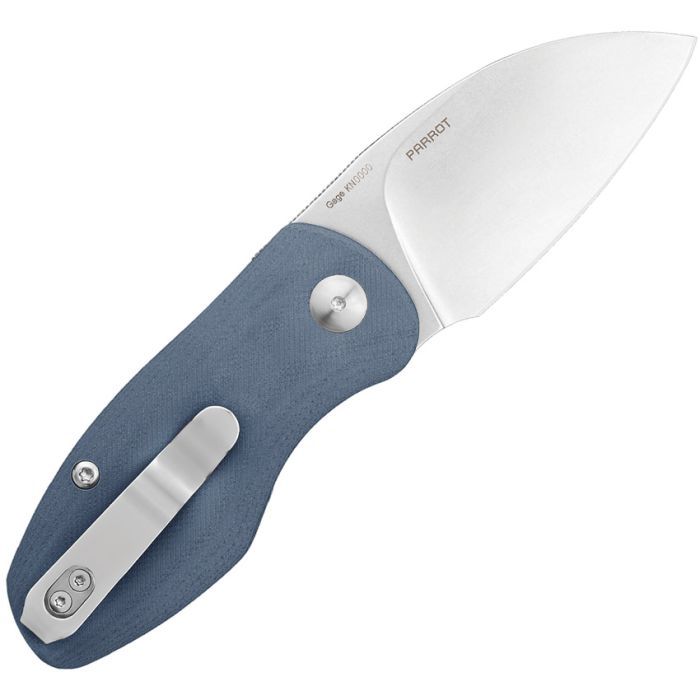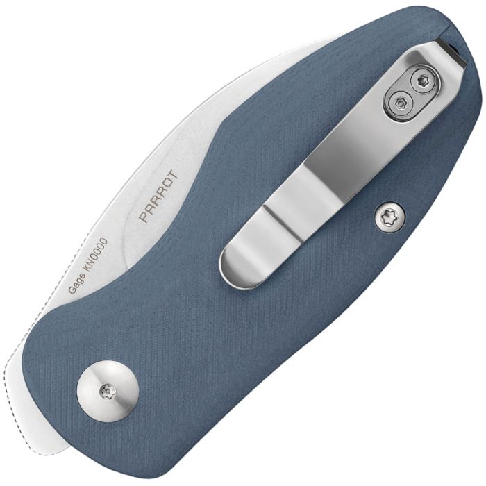 3.75" (9.53cm) closed. 2.63" (6.68cm) satin finish 154CM stainless blade. Blue-Gray G10 handle. Extended tang. Pocket clip.