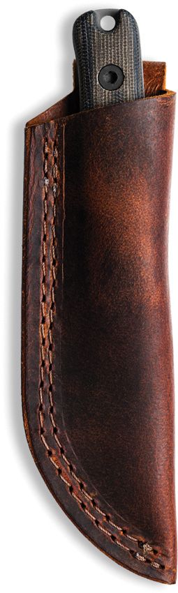 6.75" (17.15cm) overall. 2.9" (7.37cm) saber ground CPM-3V carbon steel blade. Black and green canvas micarta handle. Full tang. Lanyard hole. Matte stonewash finish blade. Brown leather belt sheath.