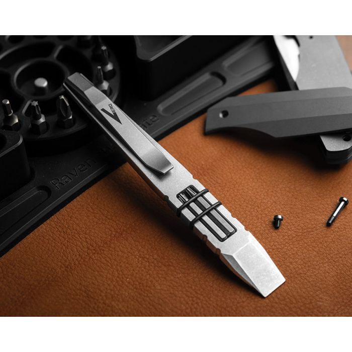 5.25" overall. Tools include: Pocket clip l Pry bar. Four 4mm WIHA Bits (Philips, Flat, T10, and T8). Titanium construction.